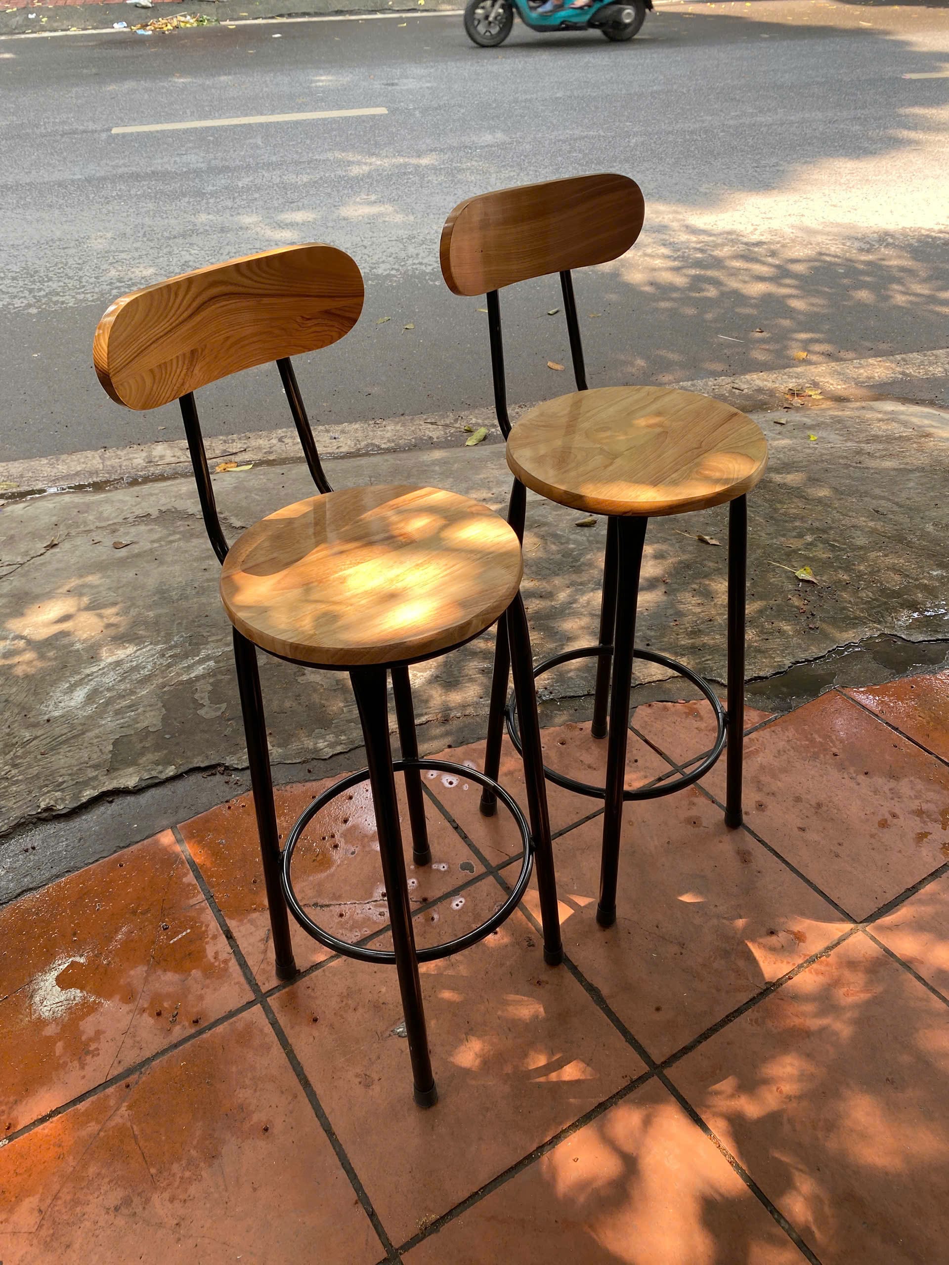 Ghế quầy bar có thiết kế khung tĩnh có tựa bằng sắt sơn tĩnh điện màu đen. Đệm mặt ghế ngồi và tựa ốp lưng bằng gỗ tự nhiên.