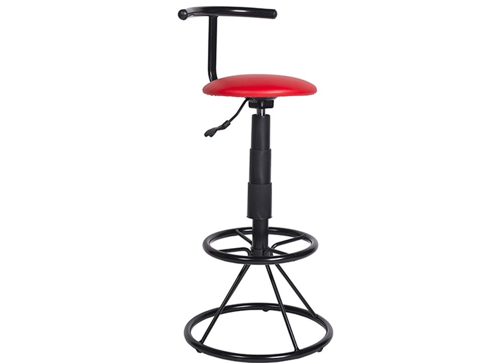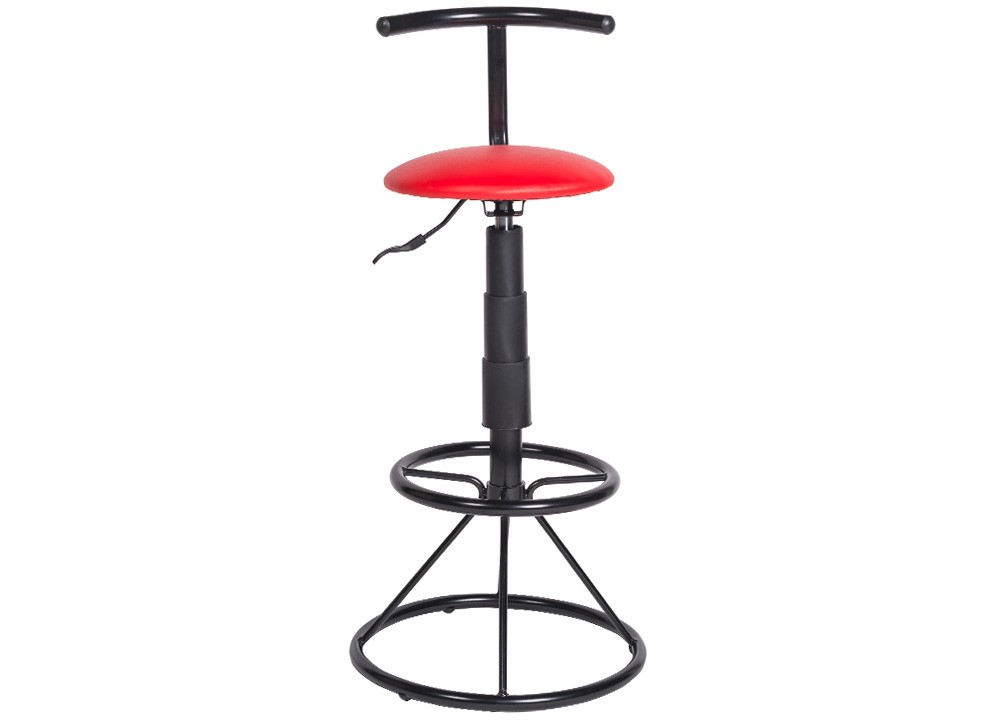 Ghế bar có đệm mút bọc PVC (giả da), lưng tựa sắt chữ T, có thể điều chỉnh được độ cao thấp khác nhau bằng cần hơi nên thuận tiện khi sử dụng. Ghế có chân thép sơn tĩnh điện màu đen và có chỗ để chân bằng khung thép tròn.
